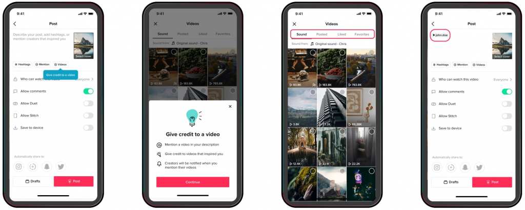 TikTok entend mieux valoriser le travail des créateurs de contenus sur la plateforme. Pour cela, l’application a mis au point une nouvelle fonctionnalité permettant aux utilisateurs de créditer les créateurs de contenus. Kudzi Chikumbu, directeur de la communauté des créateurs chez TikTok US, a récemment expliqué : “Qu’il s’agisse de participer à la dernière tendance, d’ajouter une punchline à une blague ou de créer le prochain son viral, les créateurs peuvent facilement et directement citer leur inspiration”. En d’autres termes, cet ajout devrait permettre aux utilisateurs de créditer les vidéastes qui les ont inspirés. Un bon moyen de mettre la lumière sur les créateurs qui proposent des contenus innovants et viraux.